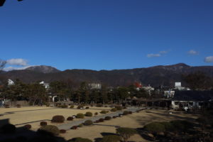 昼食を食べ終わり,松本城に行きました.観覧料¥700で天守内に入ることができます.天守内の階段はかなり急で,大人でもやや緊張してゆっくりと昇り降りするほどです.途中で立ち止まると危険なので,階段での写真撮影は禁止です.急な階段を上りきった6階からは,庭園と遠くの山並みを見渡せます🔽